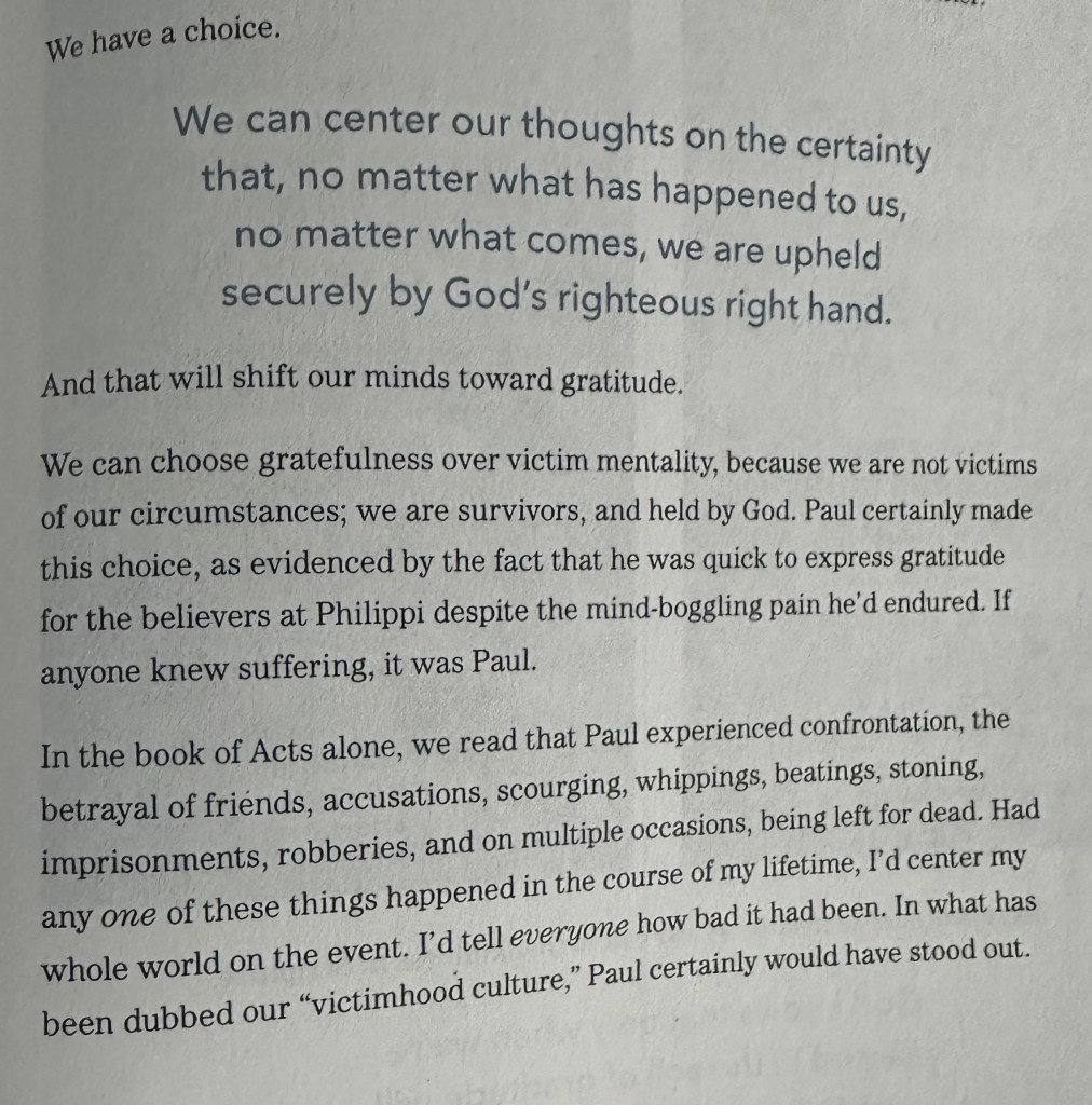 We are decorating our homes and businesses for fall. That means that Thanksgiving is right around the corner. I may have made a big leap there, skipping over some other events that you may like. I am not a huge fan of some of the fall celebrations. I am a fan of Thanksgiving food and thinking about what we have to be thankful for. We get so caught up in the bad, depressing, loneliness, and victimhood of life that we forget all that we have to be thankful for on a daily basis. Let’s change our focus. We have a choice. What choice will you make today and everyday? Will you choose to let your circumstances choose your mood and mindset or will you choose joy and gratefulness?